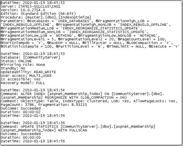 The above output is created by Ola’s stored procedure, and is great for seeing exactly what is going on after the job is executed.