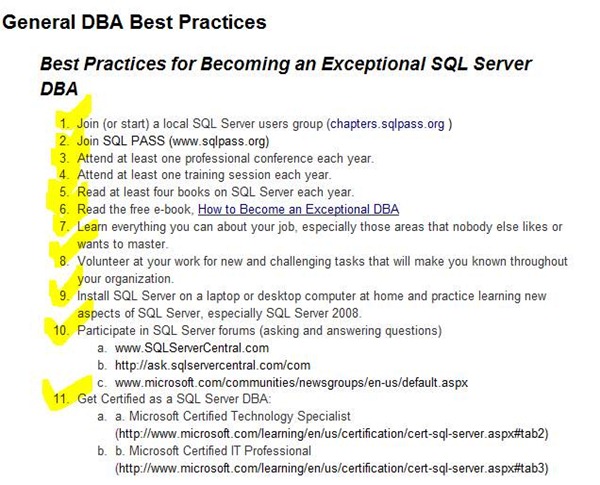 Today I got MCITP in BI and I finished the check list in your article: http://www.simple-talk.com/sql/database-administration/brads-sure-dba-checklist/.