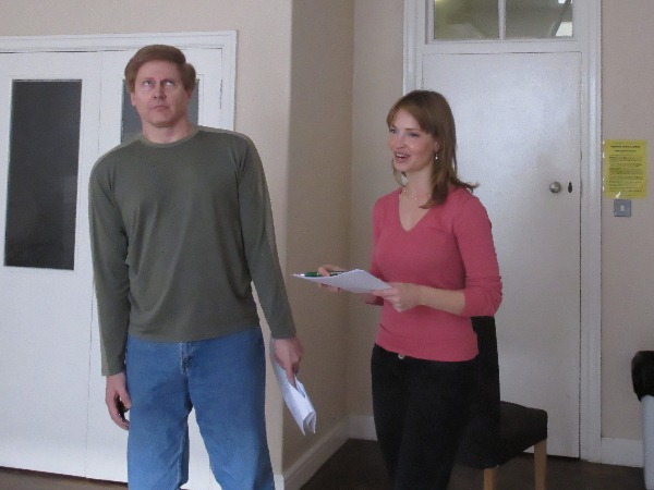 Unlike the previous day where we just read our lines, this time we acted out the lines. While I had read the script, I had yet to memorize the script, which meant that I had to read/act from the script. For the most part Nell had memorized most of her lines, which made it much easier for her than for me.