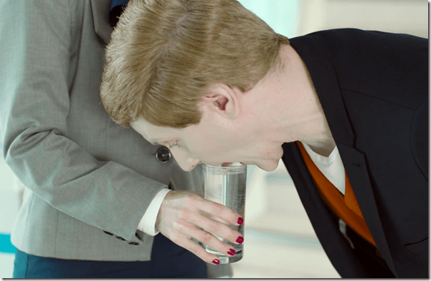 Now that Alien Brad is speaking better English, now I have to go back to remembering lines again. Fortunately, there were not a lot of lines, and even if I messed them up, it would be hard for the audience to know if I was making a mistake or not. The hardest part of this scene was trying not to laugh as I was lapping out of the cup of water. We did a lot of takes for this scene, wide angles and close-up’s, so I did a lot of lapping, to the point where my tongue got tired. The crew on the set were also laughing, which made it even harder for me to keep a straight face. Nell, of course, kept her straight face, and as usual, did a great job.